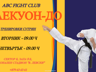 Тренировки по таекуон-до сутрин се провеждат вторник и четвъртък от 09.00 ч